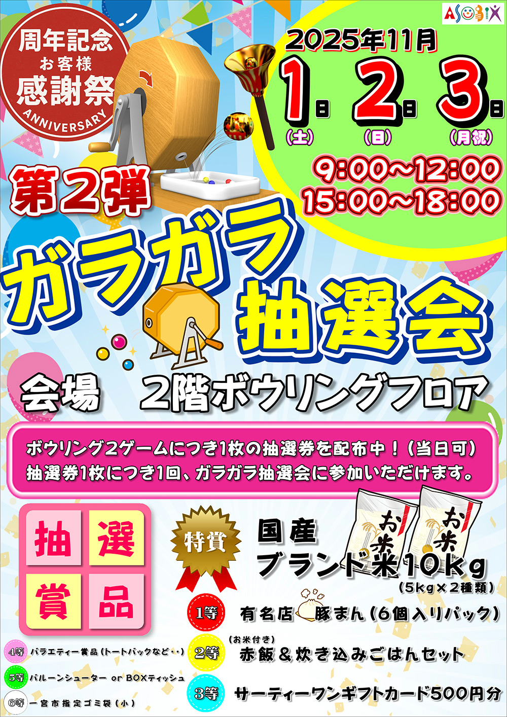 周年記念お客様感謝祭【第2弾】ガラガラ抽選会