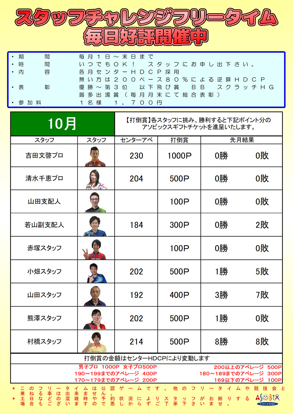 A2杯は各フリータイム(3ゲーム)と早朝チャレンジシフト合わせての総合表彰です。